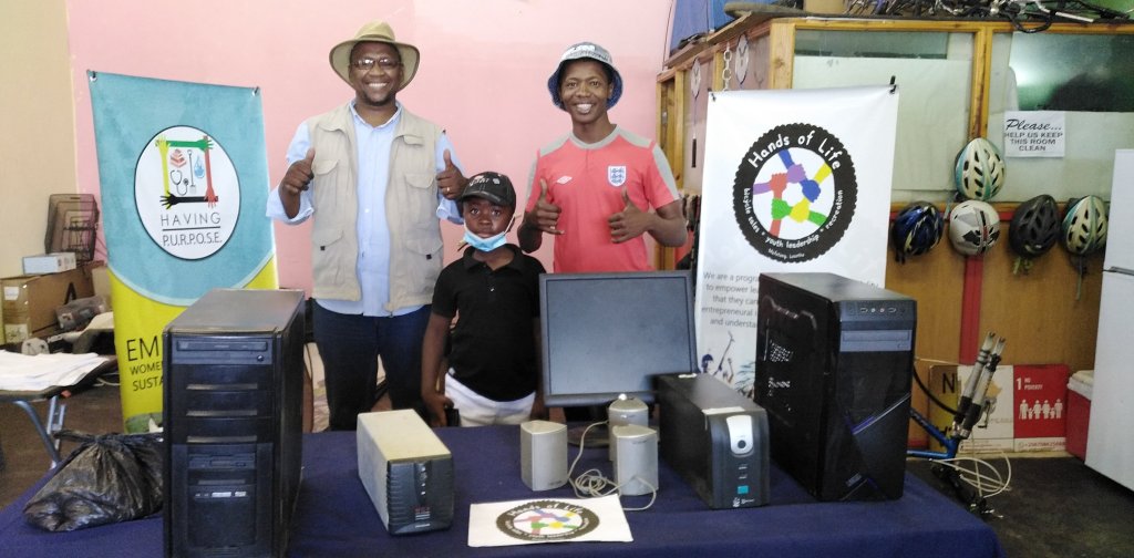 We close our weekend with a huge excitement after a father and his son drove a mile from village to our Youth Center to donate a set of computers and power banks. Mr Taele Mashea knew about Hands of Life-Cycling organization few months ago and had always wanted to enroll his son to the center . This week he visited the center and was touched by the fact that Hands of Life-Cycling is empowering the young people and led by young people at the greater expense without constant sponsorship, he therefore decided with his family to donate computers and support the youth pruduction studio at the center.