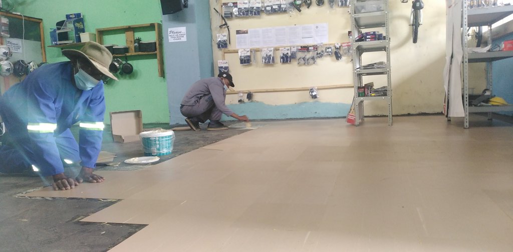 We take this opportunity to invite you to volunteer with us during this time of the construction. We want volunteers who can help with painting, roofing, Gardening, plumbing, electrical services and carpentry. Today we worked on the floors applying new tiles.
