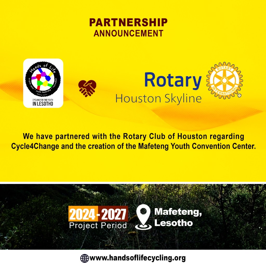 We are excited to announce our partnership with the Rotary Club of Houston for the “Cycle4Change Project” and the establishment of the Mafeteng Youth Convention Center, scheduled for 2024-2026.
